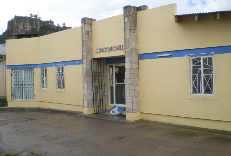 Actualmente la Clínica San Carlos cuenta con una capacidad hospitalaria de 18 camas, 24 cuneros, 2 consultorios médicos para consulta externa, servicio de laboratorio, sonografía, rayos X y una farmacia, así como un área de hospedaje para los familiares de enfermos que requieren de una hospitalización prolongada, donde se les ofrece comida y albergue.